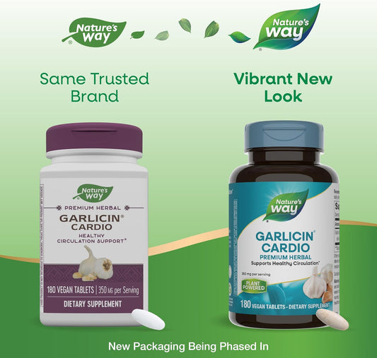 Herbal Garlicin Cardio Tablets for Healthy Circulation - Vegan, No Garlic Taste, 180 Tablets