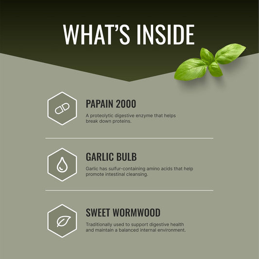 Parastrin Supplement - 60 Capsules with Black Walnut, Garlic Bulb, Papain 2000, BioPerine - Vegan Formula by Approved Science