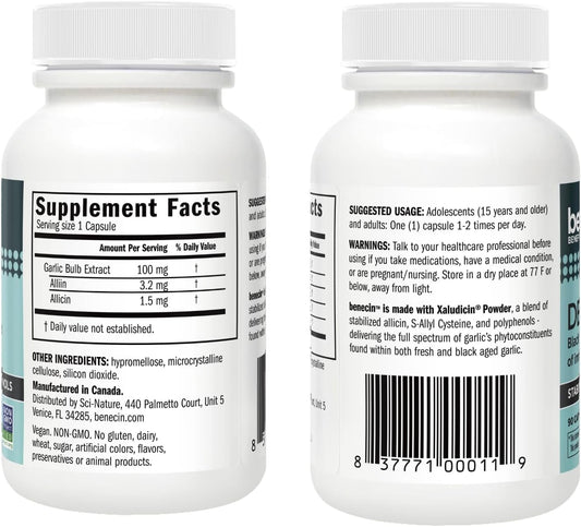 Benecin Defense 1500 mcg Stabilized Allicin Capsules with SAC & Polyphenols for Immune & Heart Support - 180 Vegetarian Caps