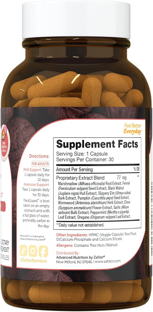 Zahler ParaGuard Capsules: Natural Gut Health Supplement with Wormwood, Garlic, Pumpkin Seed, Clove - Certified Kosher - 30 Count