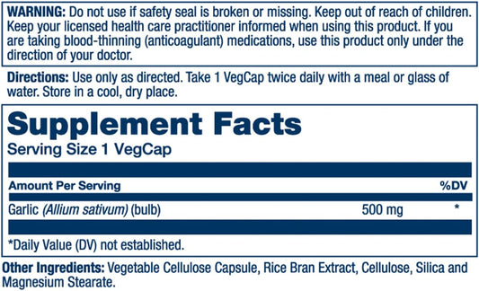 Solaray Garlic Bulb Capsules 500mg | Immune, Circulatory, Cardiovascular Support | Vegan, Non-GMO | 100 Vegetarian Capsules