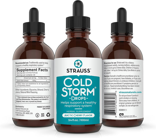 Strauss Naturals Coldstorm Drops - Immune & Respiratory Support with Arctic Cherry - 3.4 fl oz
