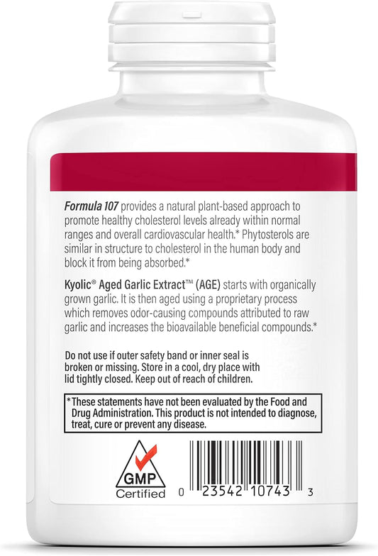 Kyolic Aged Garlic Extract Formula 107 with Phytosterols Capsules - 240 Count for Cholesterol Support