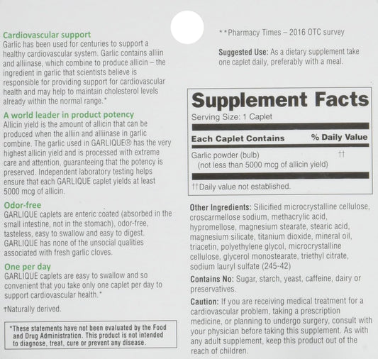 2 Packs of Garlique Healthy Cholesterol Formula with 5000 mcg Allicin, 60 Enteric Coated Caplets - Total 120 Caplets