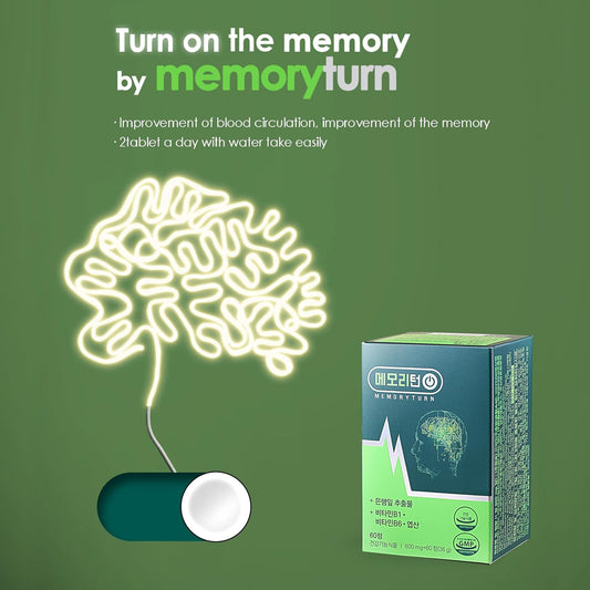 Memoryturn Brain Boost Supplement with Ginkgo Biloba & Lion’s Mane Extract - Enhance Memory, Cognitive Function, Circulation & Immune Support