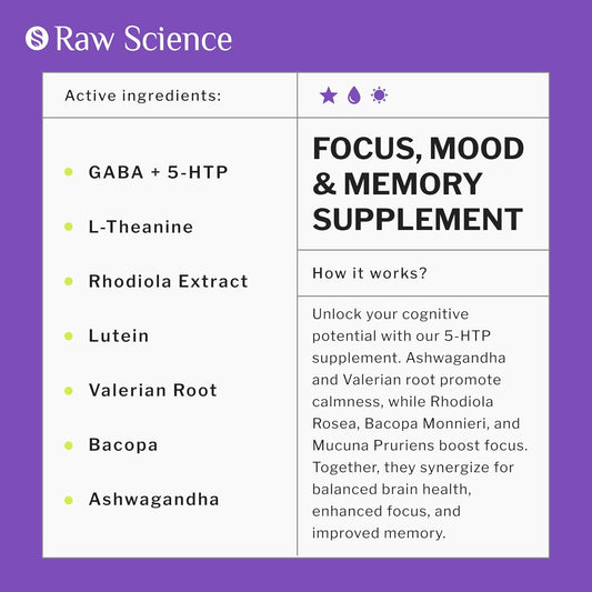 Nootropic Brain Supplements for Memory, Focus, and Mood Support - Ashwagandha, L-Theanine, Rhodiola Extract, GABA, 5HTP - 60 Capsules