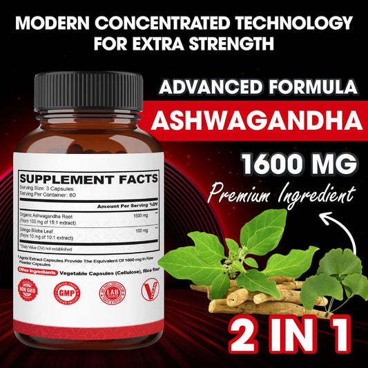 High Potency Ashwagandha and Ginkgo Biloba Supplement for Immune Support, Energy, Memory, and Focus - 240 Vegetarian CapsulesVendor:agobiRegular price $121.01 AUDRegular priceUnit price / per-