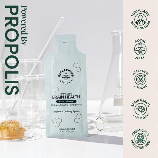 Beekeeper's Naturals Nootropic Brain Supplement with Citocoline, Ginkgo Biloba, Bacopa Monnieri, and Royal Jelly - Supports Focus, Memory, and Easier Absorption - 10ct Vanilla FlavorVendor:My StoreRegular price $143.46 AUDRegular priceUnit price / per-
