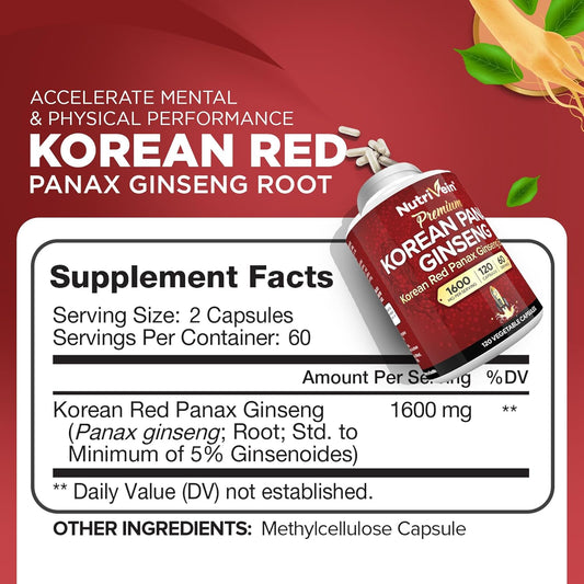 High Potency Asian Ginseng Capsules for Fighting Fatigue - 1,120mg per Serving, 50 Count
