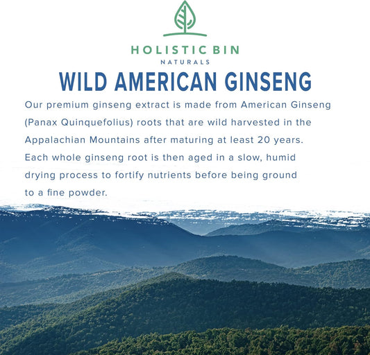 Pure Organic Wild American Ginseng Powder Supplement - 20+ Year Old Roots from Appalachia - No Fillers (25g)