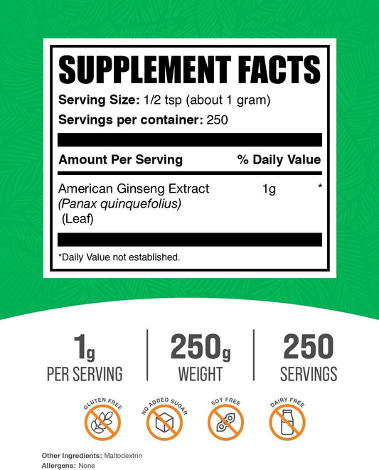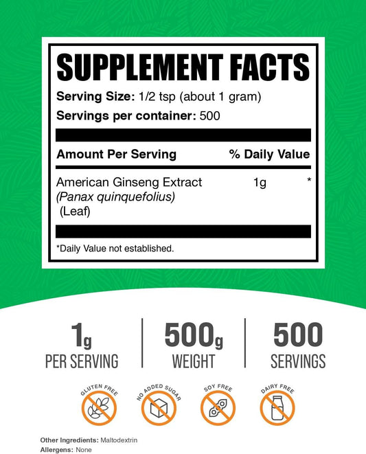 BulkSupplements.com American Ginseng Extract Powder - 500g (1.1 lbs) - 1000mg per Serving - Gluten Free - Ginseng Supplement