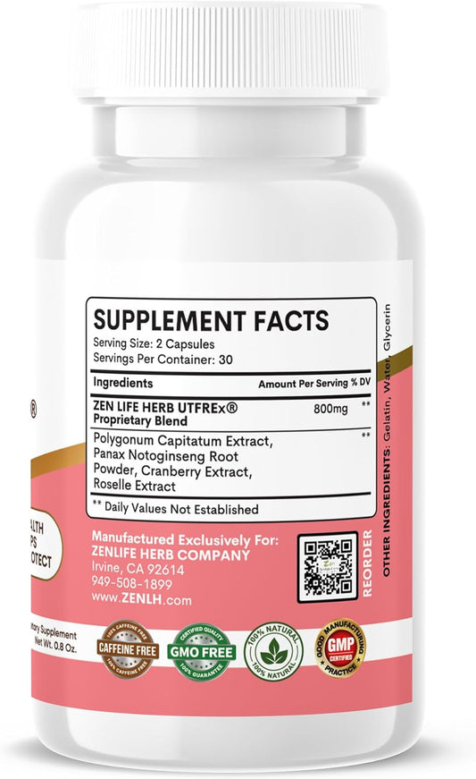 ZEN LIFE HERB UTFREx - Supports Urinary Tract Health and Immune System - Plant-Based Supplement (60 Capsules)