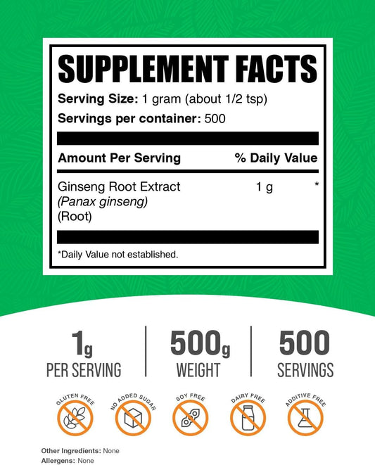 Ginseng Root Extract Powder - Herbal Supplement, Panax Ginseng, Vegan & Gluten Free - 1000mg per Serving, 500g (1.1 lbs)