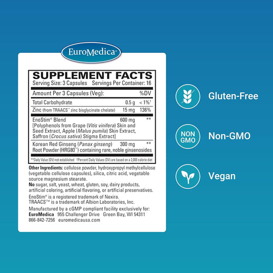 Euromedica Male Sexual Health Supplement with Korean Red Ginseng - Supports Healthy Blood Flow, Energy, and Circulation - 48 Capsules for Men