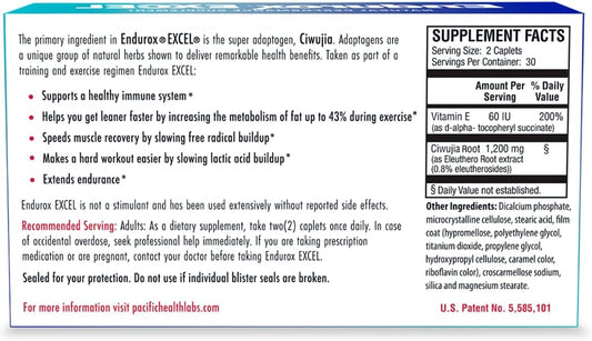 Pacific Health Endurox Excel Natural Performance Supplement with Ciwujia Root - Boost Metabolism & Endurance - 60 Capsules