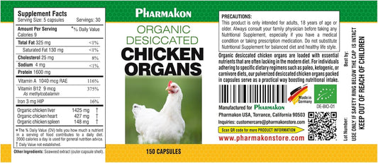 150 Capsules of PHARMAKON Desiccated Chicken Liver, Heart, and Spleen Organ Supplement
