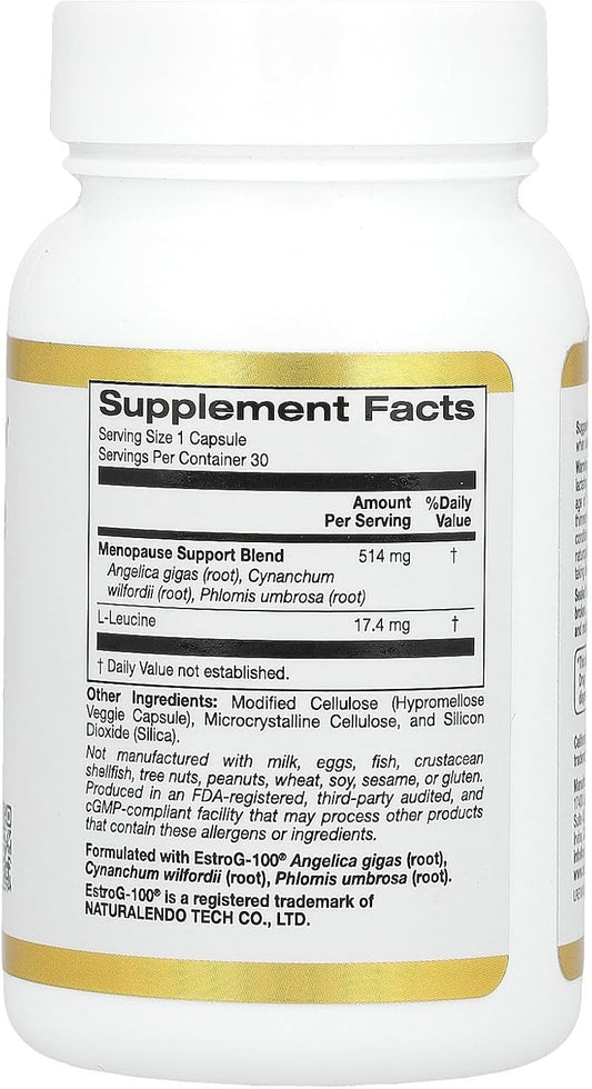30 Veggie Capsules of California Gold Nutrition Menopause Support Formula