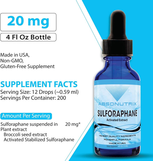 20 mg Sulforaphane Supplement for Cognitive Function & Anti-Aging - 200 Servings - Third Party Tested - Easy Absorption - GMP-Certified - Non-GMO - USA Made