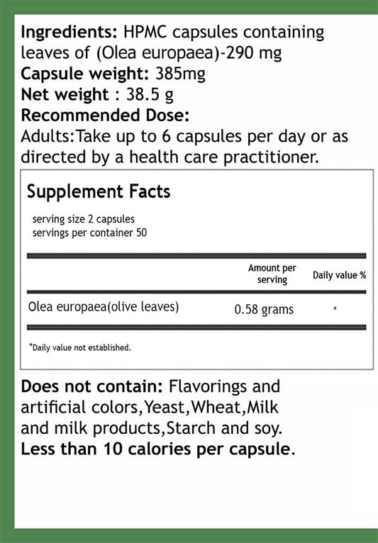 100 Vegan Capsules of Hekma Center Pure Olive Leaf Extract - Olea Europaea Supplement