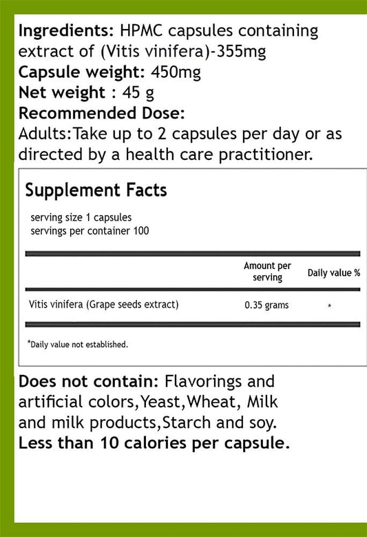 100 Vegan Grape Seed Extract Capsules from Hekma Center - Vitis Vinifera Supplement