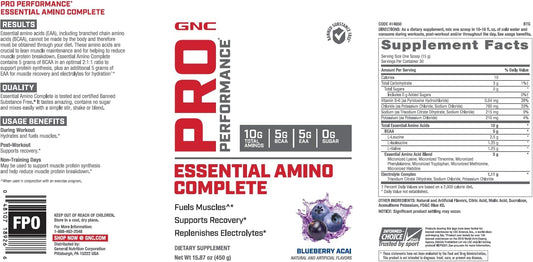 15.87 oz GNC Pro Performance Essential Amino Complete in Blueberry Acai Flavor for Muscle Recovery