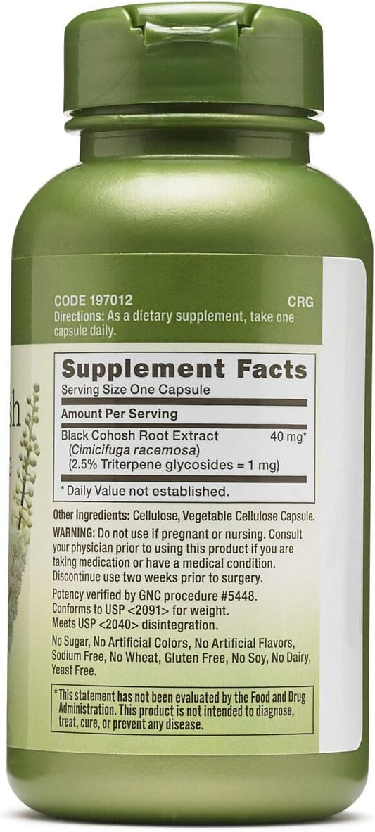 100 Capsules of GNC Herbal Plus Black Cohosh Extract 40mg for Menopausal Symptom Relief