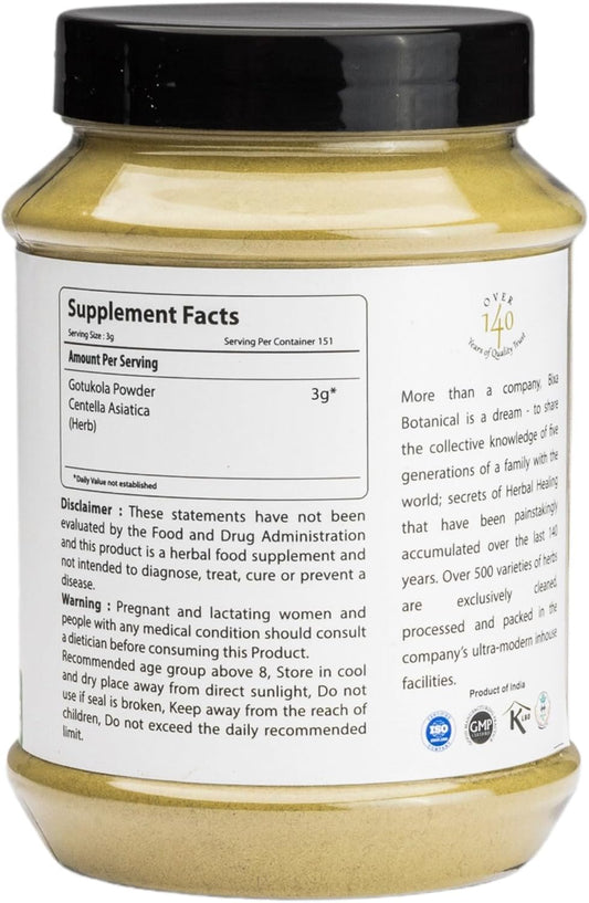 Premium Quality Bixa BOTANICAL Gotu Kola Powder Supplement - Authentic Ayurvedic Herbal Blend for Improved Overall Health - 16 Ounce Pack