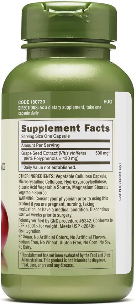 Extra Strength GNC Herbal Plus Grape Seed Extract 500mg - 60 Capsules for Antioxidant Support
