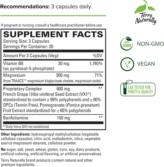 Terry Naturally Clinical OPC Heart Capsules - French Grape Seed Complex - Non-GMO, Vegan, Gluten Free - 60 Count