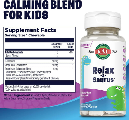 Natural Grape Flavored Stress Support Supplement for Kids with L-Theanine, Herbal Relaxation Blend, 30 Chewables, 60-Day GuaranteeVendor:KALRegular price $91.94 AUDRegular priceUnit price / per-