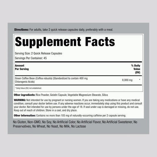 High Potency Green Coffee Bean Extract Capsules - 8000 mg | 90 Count | Non-GMO, Gluten Free Dietary SupplementVendor:Piping RockRegular price $90.13 AUDRegular priceUnit price / per-