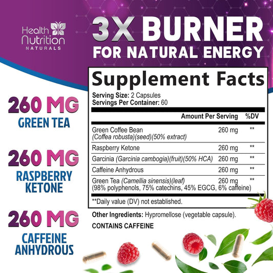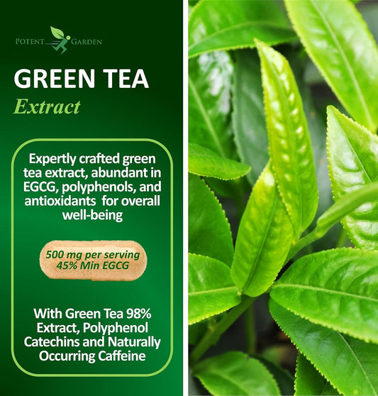 Green Tea Extract Capsules - Natural Energy, Mental Focus, Immune Support, Antioxidant, Healthy Heart - 120 Capsules