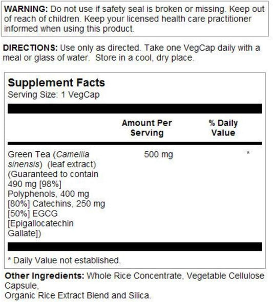 High Potency Solaray Green Tea Leaf Extract Veg Capsules 500mg - 30 Count Bottle