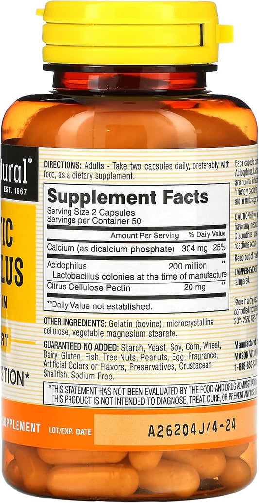 100 Capsules of Mason Natural Probiotic Acidophilus with Pectin for Gut Health and Digestive Support
