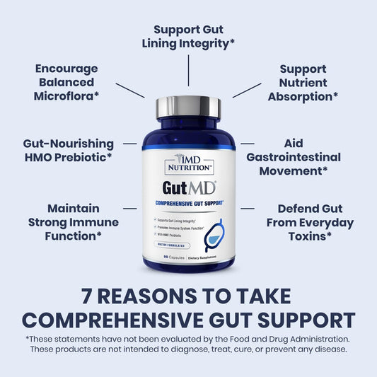 1MD Nutrition GutMD - L-Glutamine Capsules with Prebiotic for Gut Health - Supports Digestive Tract Integrity - 90 Capsules