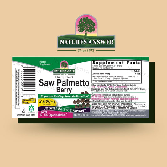 2 oz Organic Alcohol Saw Palmetto Berry | Prostate & Urinary Health Support for Hair Growth
