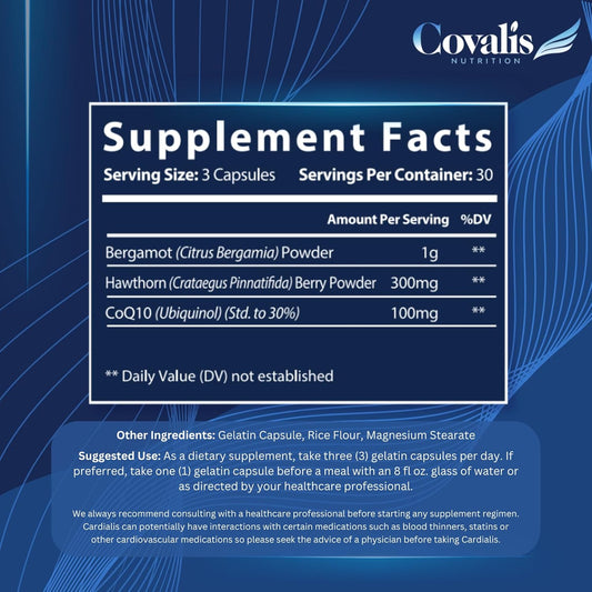 Cardialis Heart Health Supplement with Bergamot, Hawthorn Berry, CoQ10 | Promotes Healthy Blood Circulation & Antioxidant Support | 30 Capsules