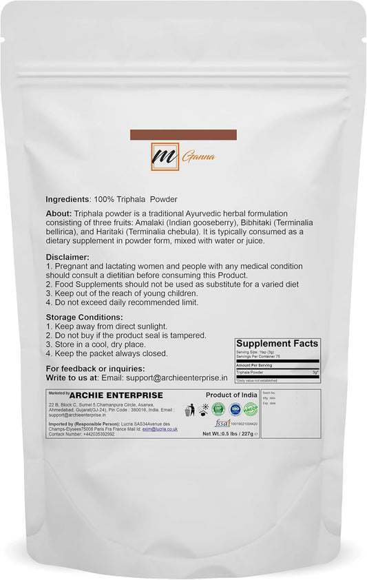 100% Natural Triphala Powder for Skin and Health Care - 227g (0.5lbs) by mGanna