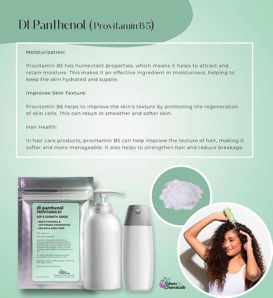 2oz dl-Panthenol Powder - Provitamin B5 for DIY Hair & Skin Moisturizer