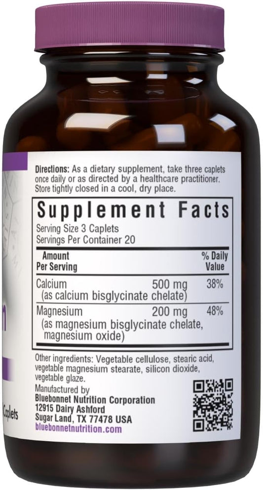 60 Count BlueBonnet Albion Chelated Calcium Magnesium Caplets for Bone Health and Immune Support