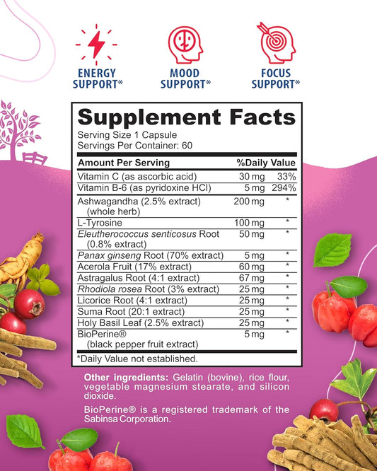 60 Capsules of SUNNY SAM Adrenal Cortex Support Supplements for Healthy Cortisol Levels, Energy, and Stress Relief