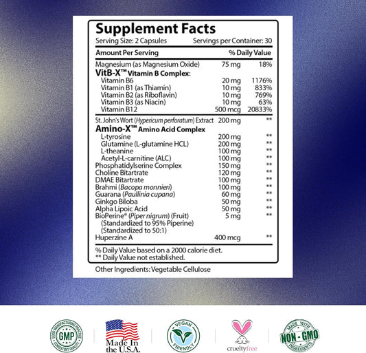 60 Capsules of Vegan Nootropic Brain Booster for Cognitive Function - Research Verified Formula