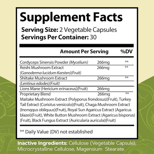 60 Capsules Mushroom Almanac Nootropics Brain Support Supplement - Boost Energy, Focus, Immune Support - Lions Mane, Cordyceps, Turkey Tail, Shiitake Mushrooms
