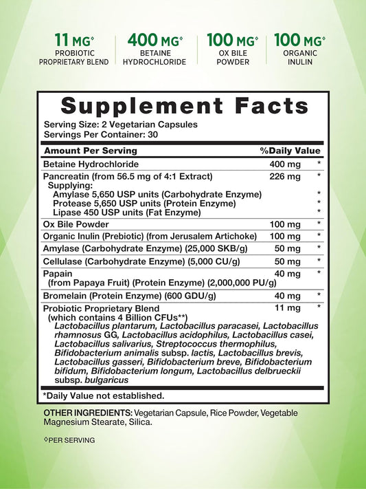 60 Capsules Nature's Truth Probiotics with Enzymes for Digestive Health - Non-GMO & Gluten Free - Stomach Friendly for Men and Women