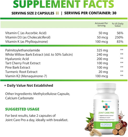 60 Capsules Ben's Natural Health Joint Support Supplement with Hyaluronic Acid, Turmeric, Vitamins C, D, K, and Tart Cherry Extract for Joint Care