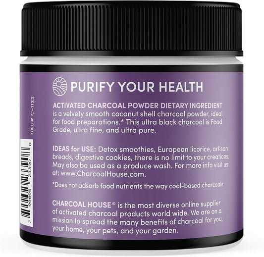 5oz Charcoal House ULTRA FINE Coconut Activated Charcoal Powder for Culinary and Cosmetic Use - Velvety Smooth Texture for Smoothies, Ice Creams, Pastries, and Soaps - Soft Finish, No Grit