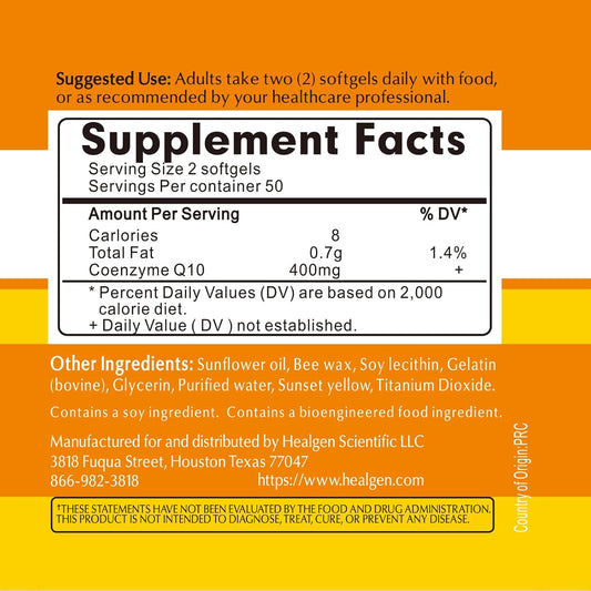 200mg CoQ10 Softgels for Energy & Antioxidant Support - 100 Count - 50 Days Supply for Women & Men by Healstone