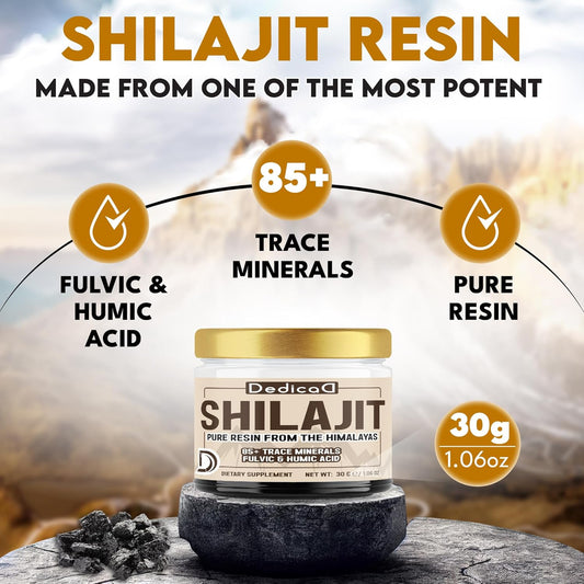 30g DEDICAD Shilajit Pure Himalayan Organic Resin - Natural Supplement with Fulvic & Humic Acid - 60 Servings for Body Balance, Heart, Immune Health