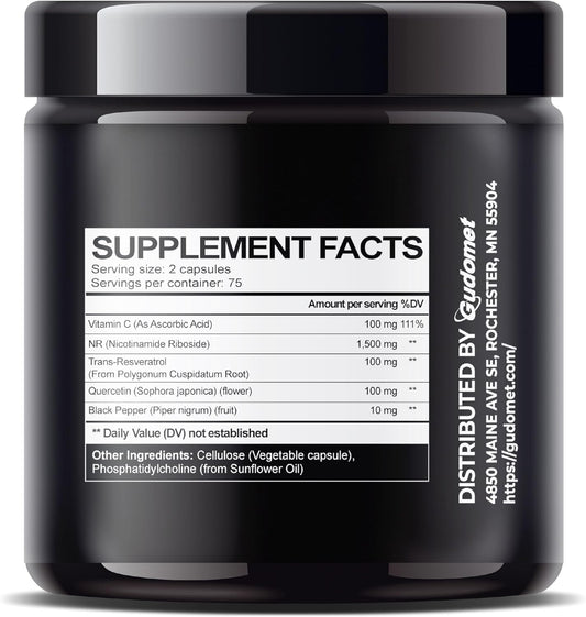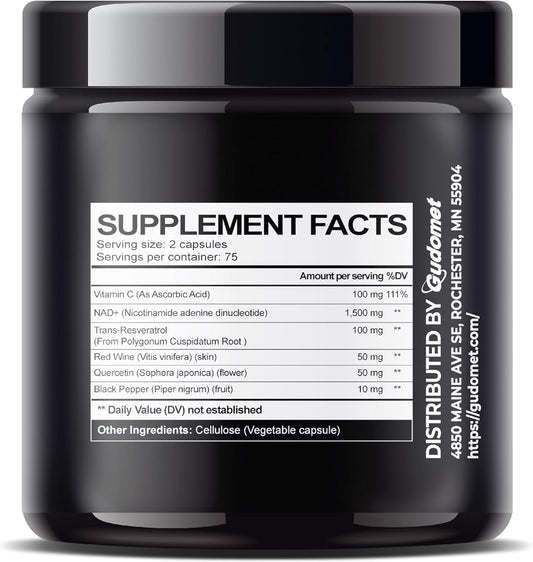 150 Capsules of GUDOMET NAD+ with Trans-Resveratrol, Red Wine, Quercetin & Vitamin C for Cellular Wellness & Healthy Aging from USA