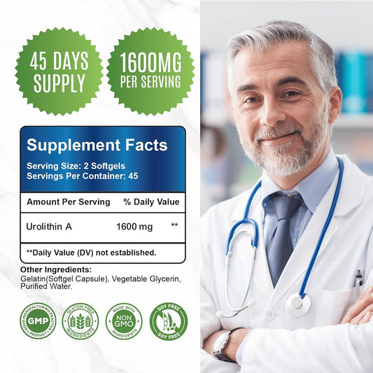 180 Softgels DQQI Urolithin A Supplement 1000mg for Healthy Aging & Mitochondrial Health - Antioxidant Support for Men & Women